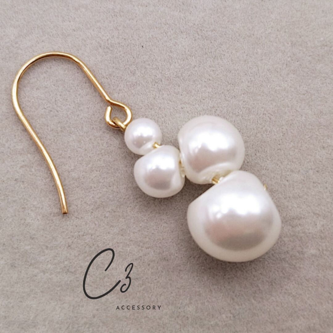 #パール#鈴丸パール#おしゃれ#お出かけ#可愛い#白#バブル#イヤリング#フック式#スタッド式#サージカルステンレス#オケージョン