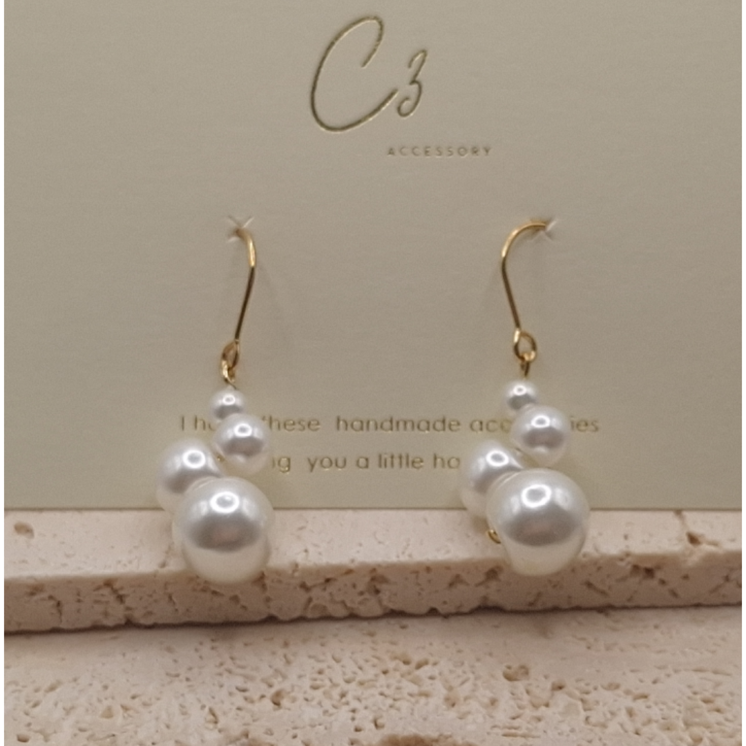 ピアストップ2cm→鈴丸パール:各1cm,8mm,5mm 下部分2.8cm→小長パール:1mm,長ビーズ6mm