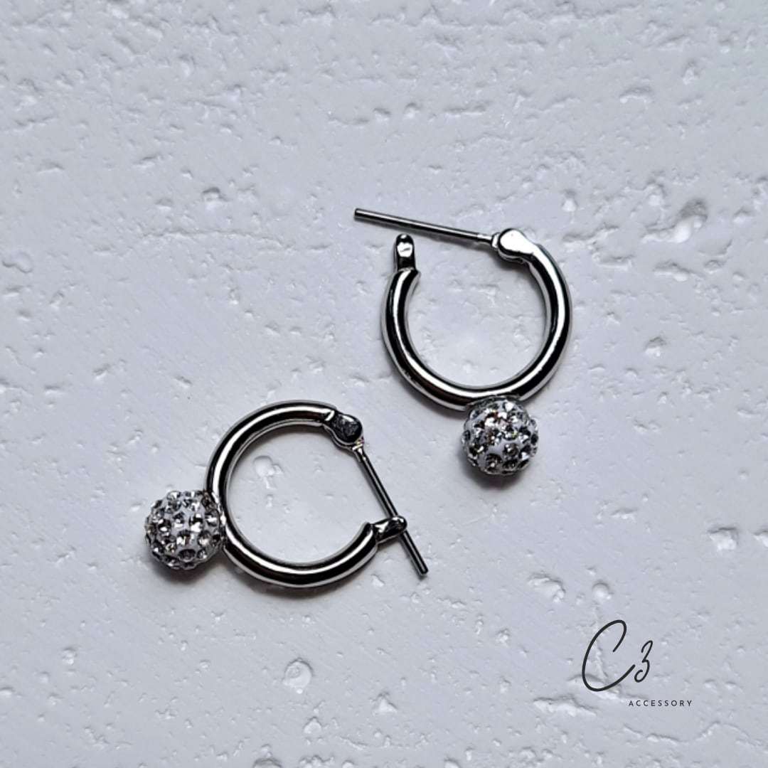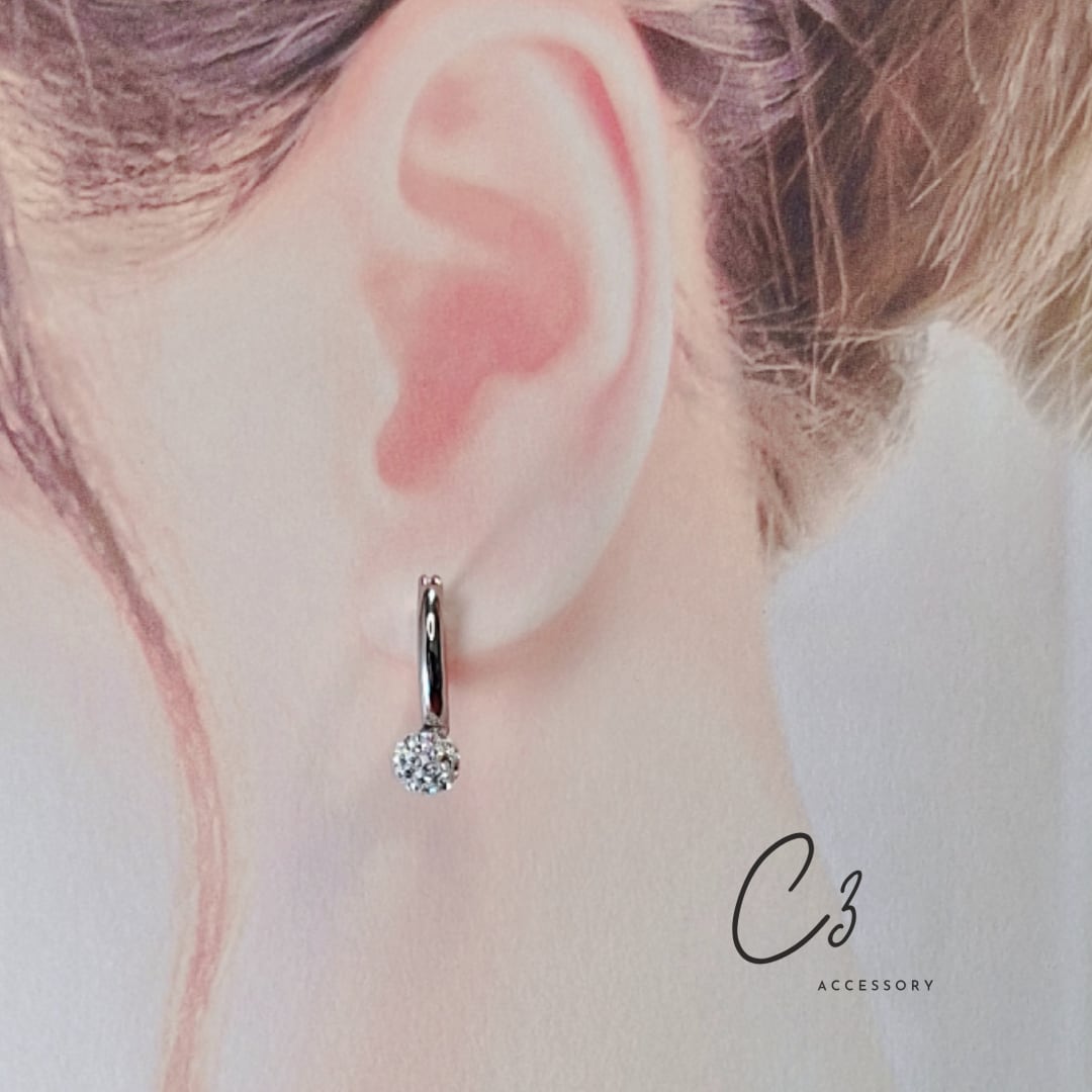 ワンタッチで装着できるフープピアスです。シルバーのシンプルなボディに細やかな光を放つパヴェボールが、クールな印象です。小ぶりながらも、ボール部分に散りばめられたストーンが光りを受けて繊細に煌めき、耳元にさりげない華やかさをプラスしてくれます。甘さと上品さを併せ持った魅力的なピアスです。ビジネスシーンでもおでかけにも、どんなスタイルにもしっくり馴染みます。デイリーにもおすすめです。軽やかな着け心地と洗練されたデザインで、大人の女性の魅力を引き立てます。