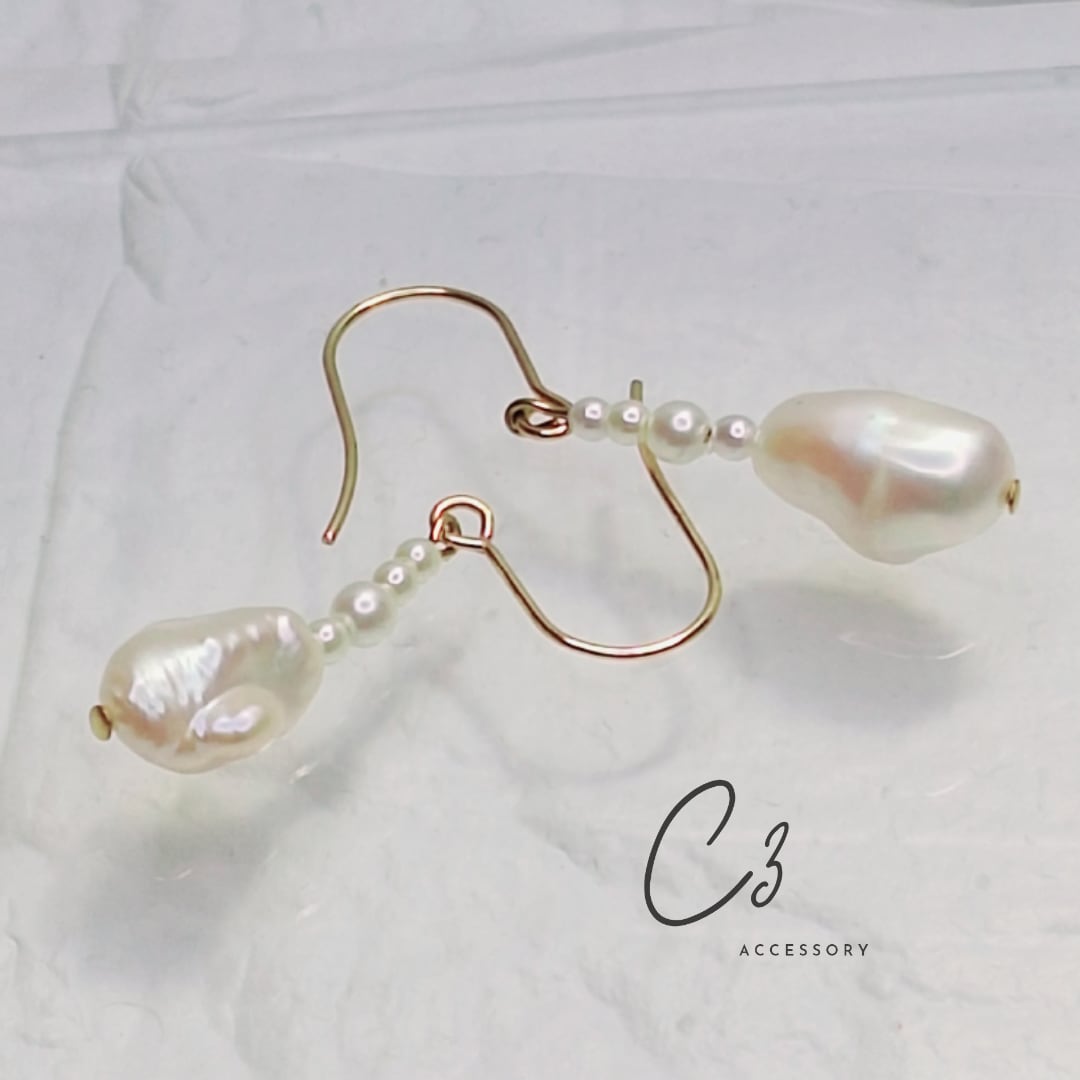 全長(耳たぶから下):3.7cm ピアスヘッドのみ:2.3cm 淡水パール:1.3cm 小パール:それぞれ1.5mm,2mm