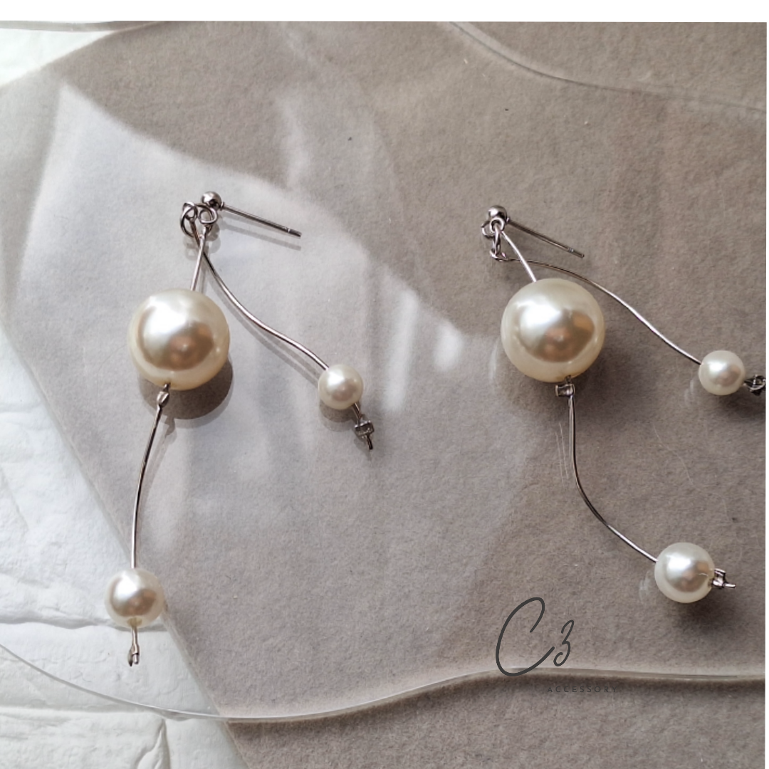 大きさの異なったパールが点々とお顔周囲を飾り、すっきりと垢抜けて個性的な印象になります。少しかしこまったお席や、デートの時の装いに合わせやすく華やかな女性らしさを引き立ててくれます。お洋服のカラーも選びません。プレゼントにもおすすめできる”C3イチオシ”の作品です。ぜひお試しください。