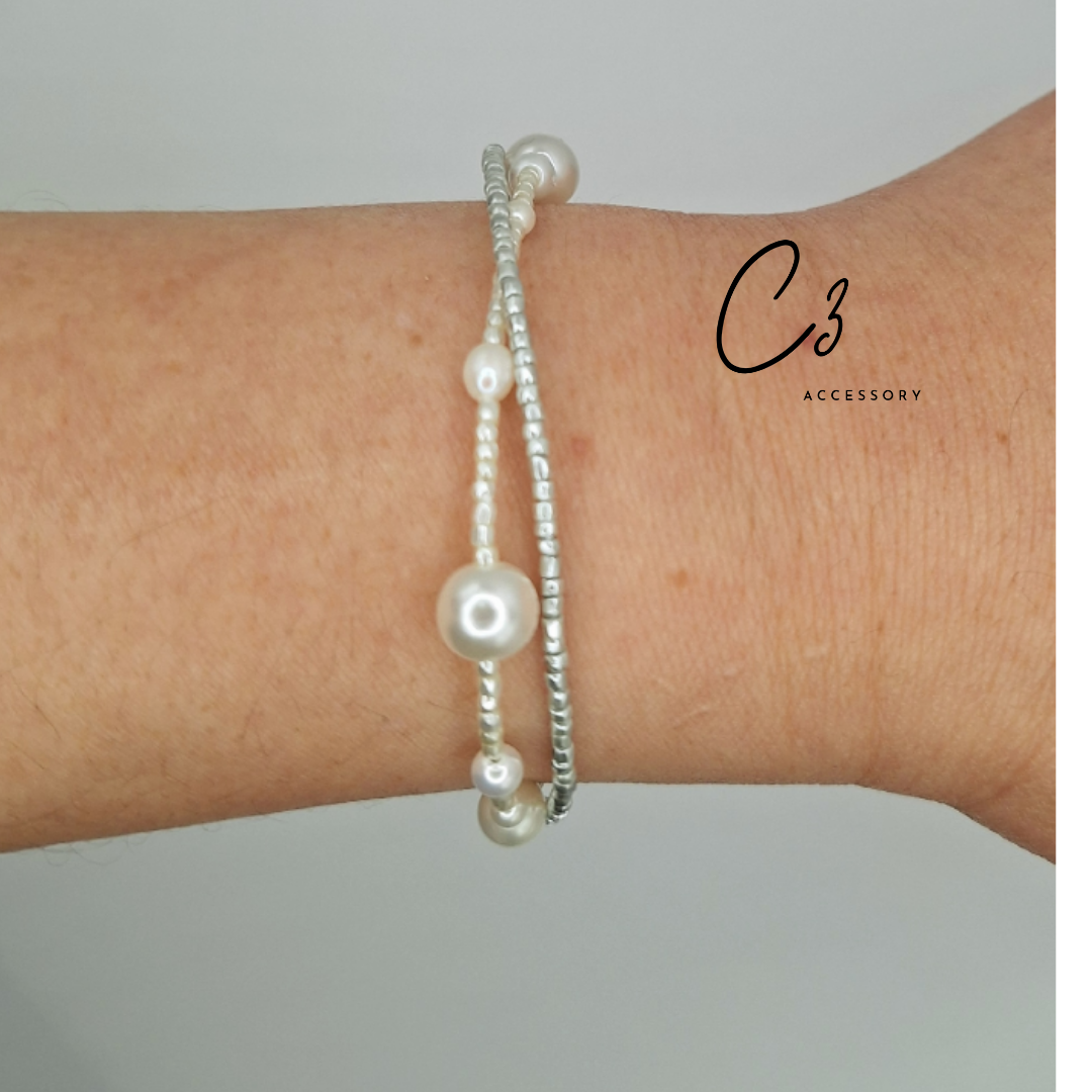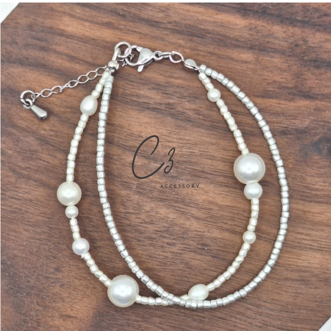 パールの種類、色、大きさ、形、をmixして、可愛らしくて大人なブレスレットができました!